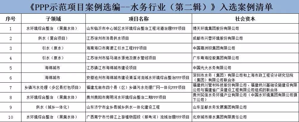 《PPP示范项目案例选编--水务行业(第二辑)》共入选10个示范项目案例,具体的项目名单和项目分布如下图所示。
