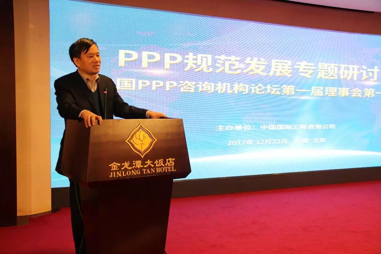 2017年12月22日,由中国国际工程咨询公司主办的“PPP规范发展专题研讨会暨中国PPP咨询机构论坛第一届理事会第一次会议”在北京隆重召开。国家发展改革委投资司副司长韩志峰、中国工程咨询协会会长肖凤桐、中国国际工程咨询公司总经理王安院士、PPP咨询业内知名专家学者应邀参加会议,64家理事单位代表悉数到场,部分非理事成员单位也纷纷报名要求参会,出席本次会议的嘉宾和代表共计160余人。论坛第一届理事会第一次会议审议通过了《中国PPP咨询机构论坛章程》及相关制度文件、首届理事会成员单位名单,选举产生理事长单位、副理事长单位、秘书长,秘书长提名产生副秘书长,并批准经专家评审产生的新申请加入论坛的会员单位。