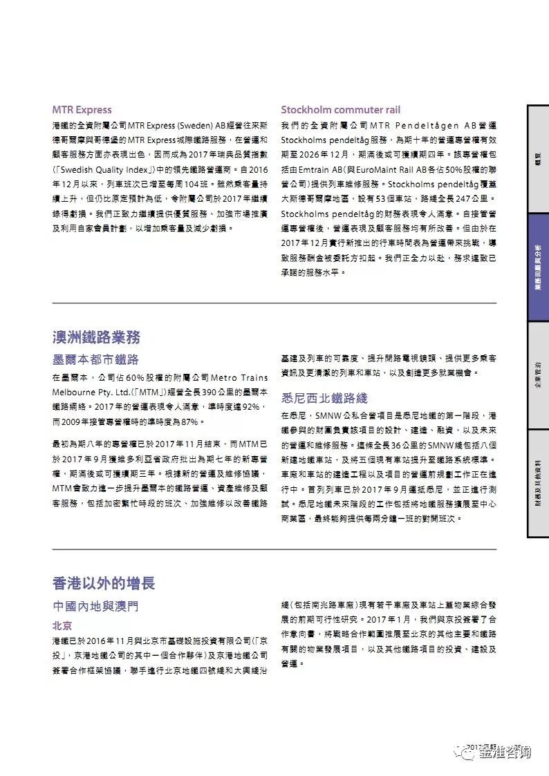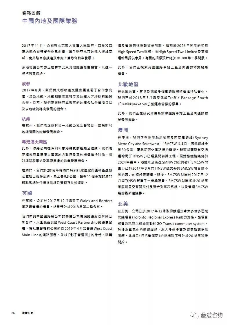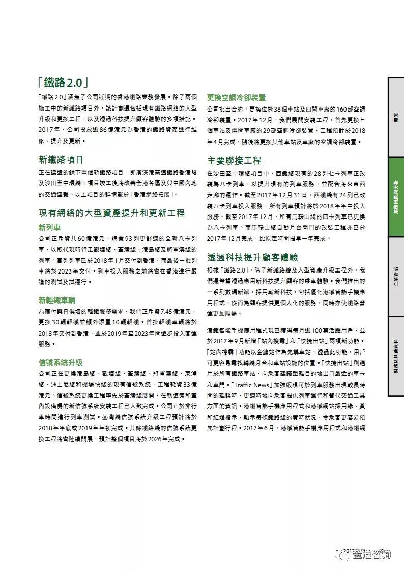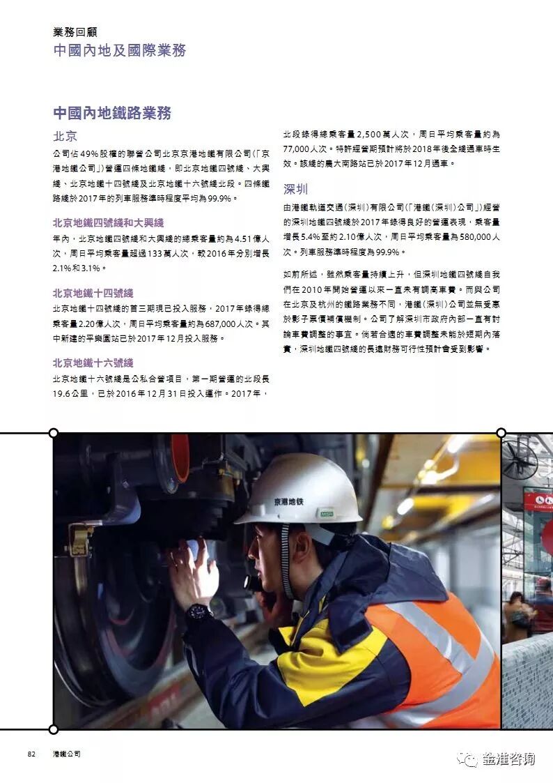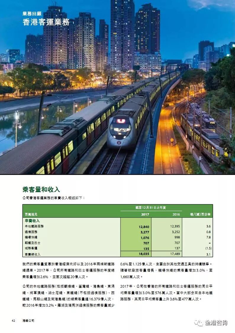 公司新闻 行业资讯 项目动态 政策法规 公司新闻 行业资讯 项目动态 政策法规 当前位置: 首页» 资讯中心» 行业资讯 行业资讯 图解港铁2017年报 发布日期:2018-05-16 作者: 来源:轨道世界 导读 图解港铁2017年报 精华节选 素材来源:MTR公开资料