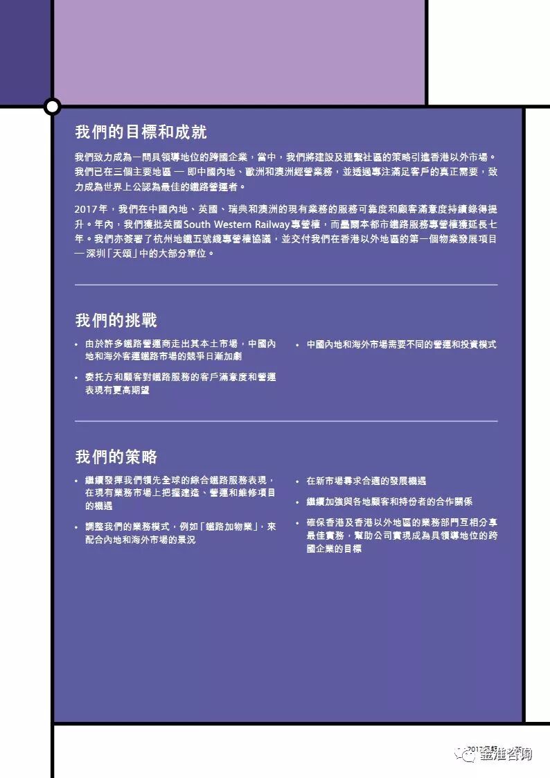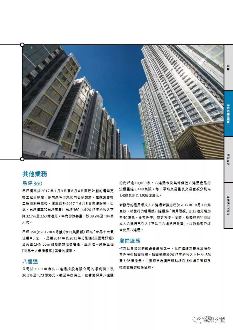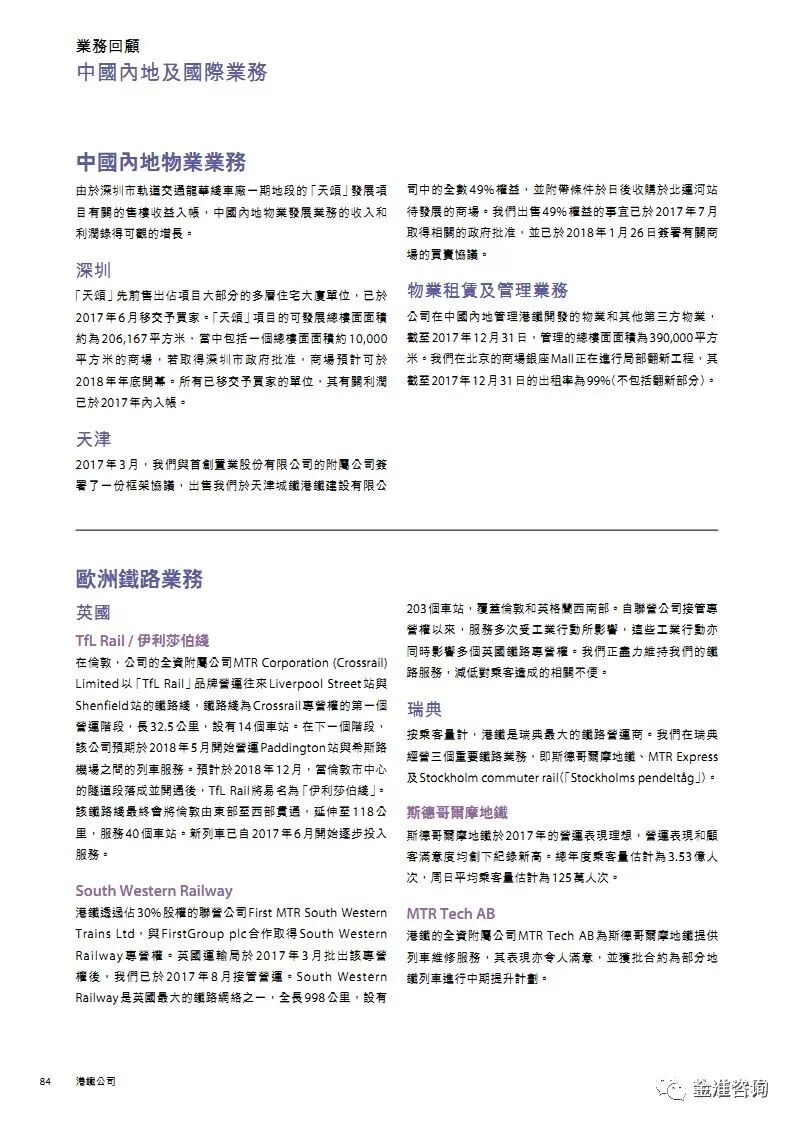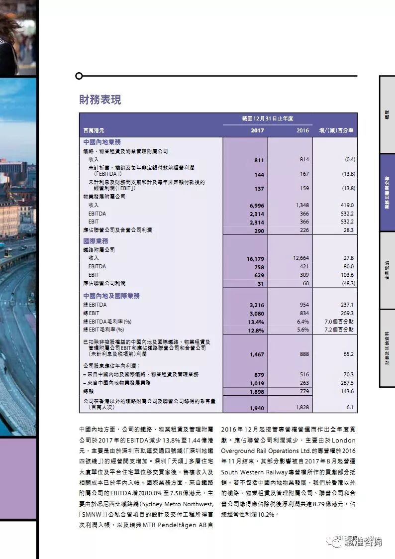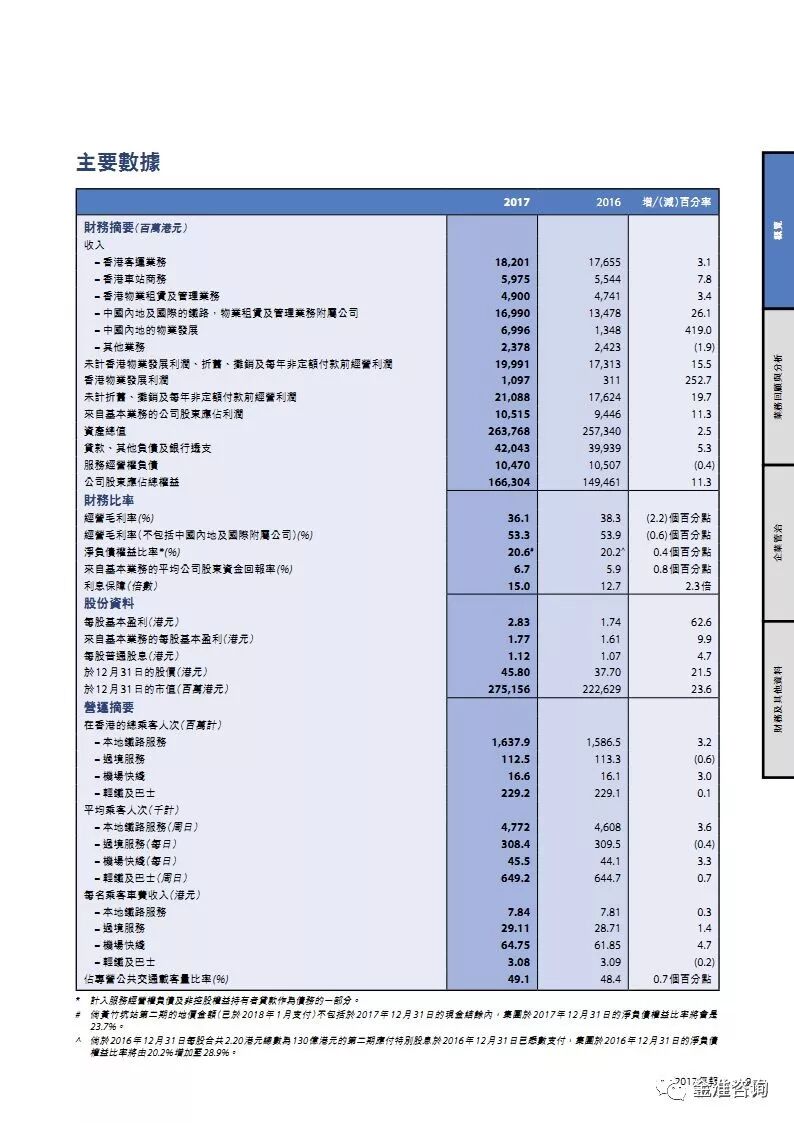 公司新闻 行业资讯 项目动态 政策法规 公司新闻 行业资讯 项目动态 政策法规 当前位置: 首页» 资讯中心» 行业资讯 行业资讯 图解港铁2017年报 发布日期:2018-05-16 作者: 来源:轨道世界 导读 图解港铁2017年报 精华节选 素材来源:MTR公开资料